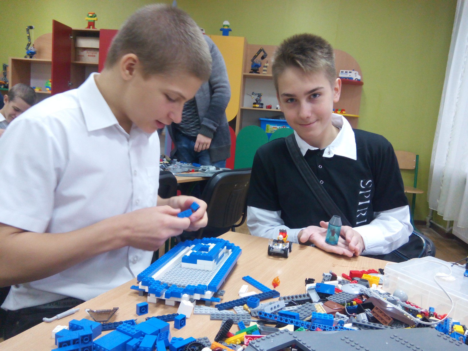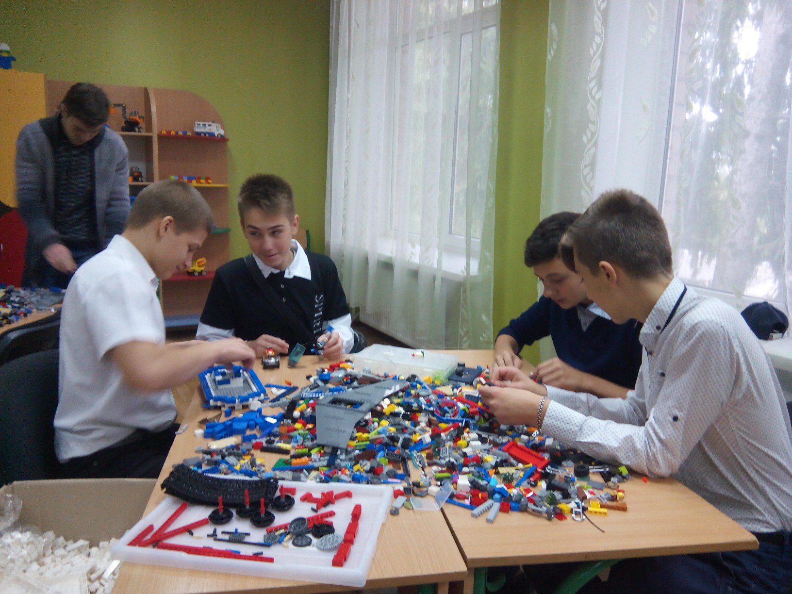 Надзвичайно цікаво проходять заняття у 5-му класі з нового для нашого закладу предмету «Технологія моделювання простих конструкцій та механізмів»! Учні із захопленням створюють моделі новітніх роботів-помічників, надаючи їм ряд корисних характеристик. А на що тільки здатна фантазія дітей! З однакового набору елементів лего вони створюють такі різні і цікаві конструкції і побудови. Уроки проводяться в груповій та індивідуальній формі. Успіхів і натхнення нашим легоконструкторам!