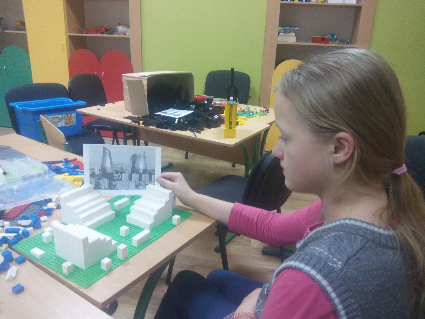 На гурткові діти працюють над важким, але неймовірно цікавим завданням: проектують та конструюють будинки і споруди м. Баку. Нагадаємо, що тема цьогорічного конкурсу ROBOTIKA – 2017 «Столиці світу»! Бажаємо успіхів і творчого мислення нашим архітекторам!