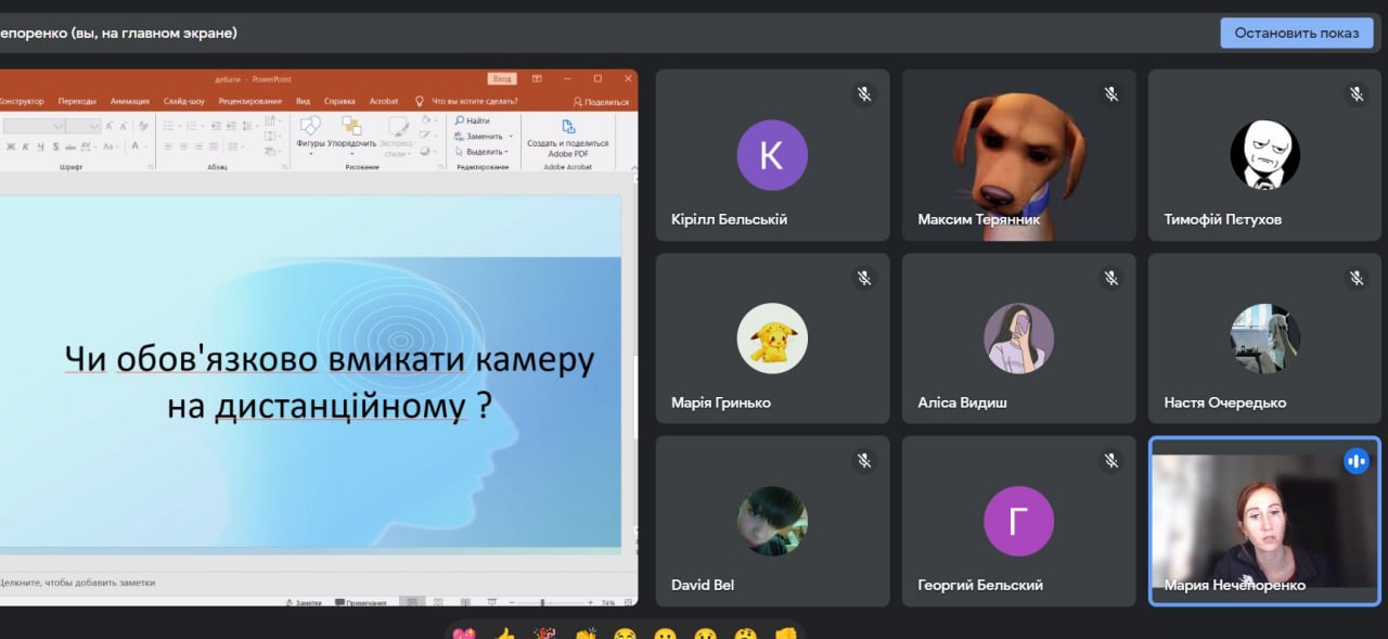 Однією з останніх захопливих тем для обговорення стало питання: “Чи обов’язково вмикати камеру на дистанційному навчанні?”. Ця проблема охоплює всю сучасну реальність освіти і викликає справжній бум різних точок зору. Спірні думки, запальні обговорення – це те, що робить цей гурток справжньою територією розвитку та вдосконалення.