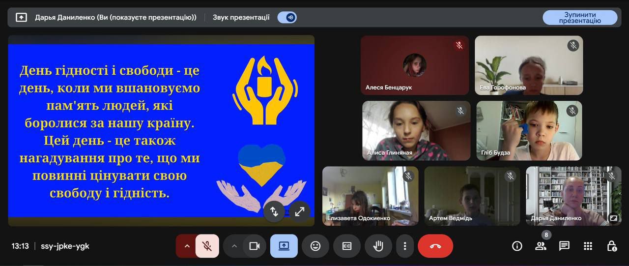 Діти переглядали тематичні відео, обговорювали ключові події Революції Гідності, створювали презентації, стіннівки та «Дерева Гідності», на яких залишали свої думки й побажання про цінності сучасної України.