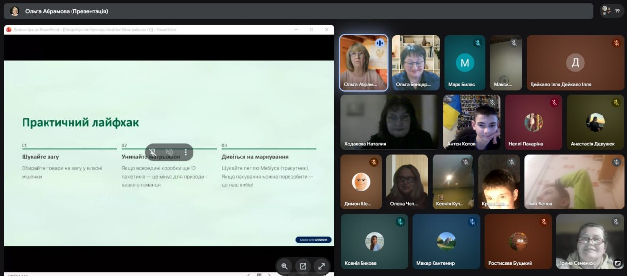 18 березня разом із усім світом ми говорили про важливе — як змінити своє ставлення до відходів і почати діяти вже сьогодні. До заходу долучилися вчителі ліцею: Ольга Абрамова, Ольга Бенцарук, Ірина Семенюк, Наталія Ходакова, Олена Чепенко. Кожна з них поділилася власним баченням екологічних викликів та простими, але дієвими лайфхаками.