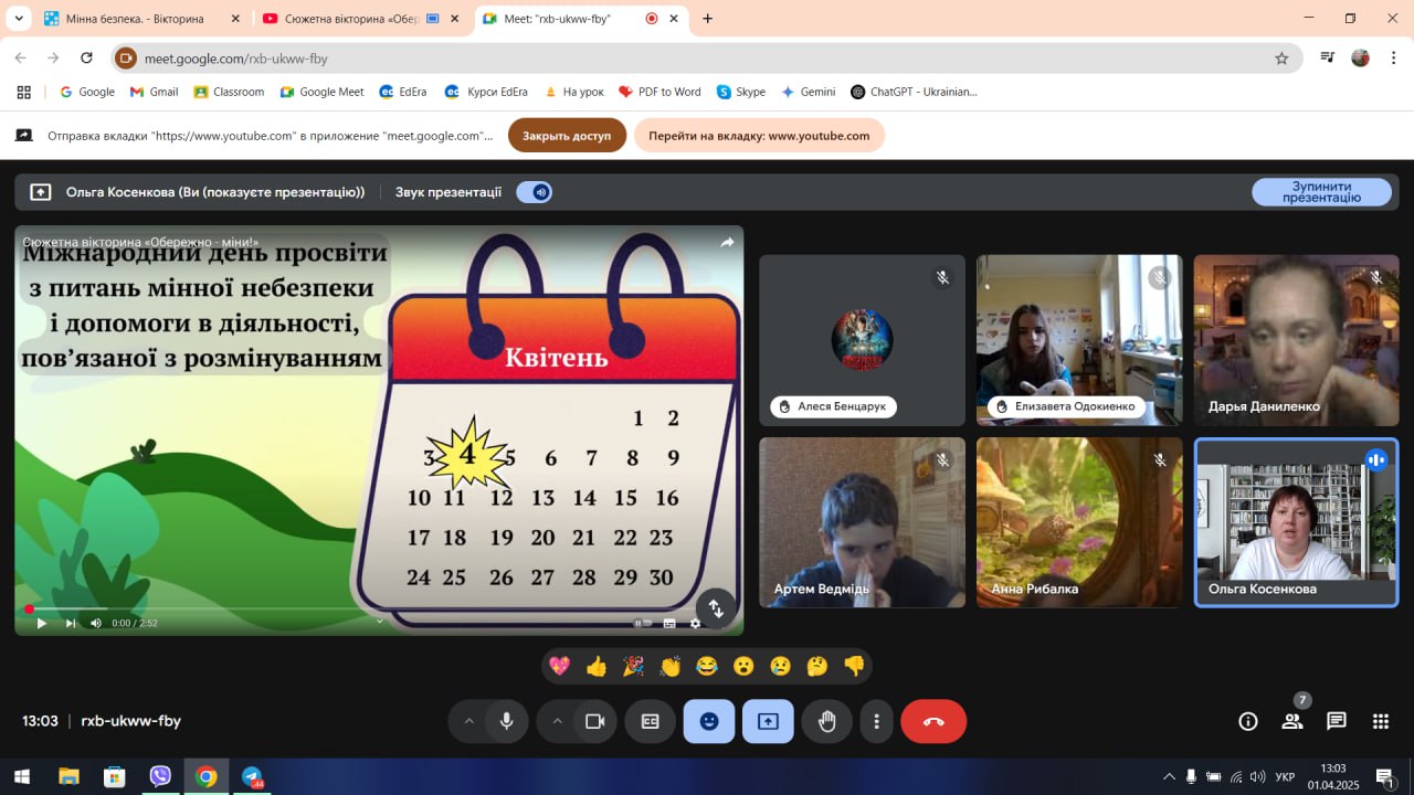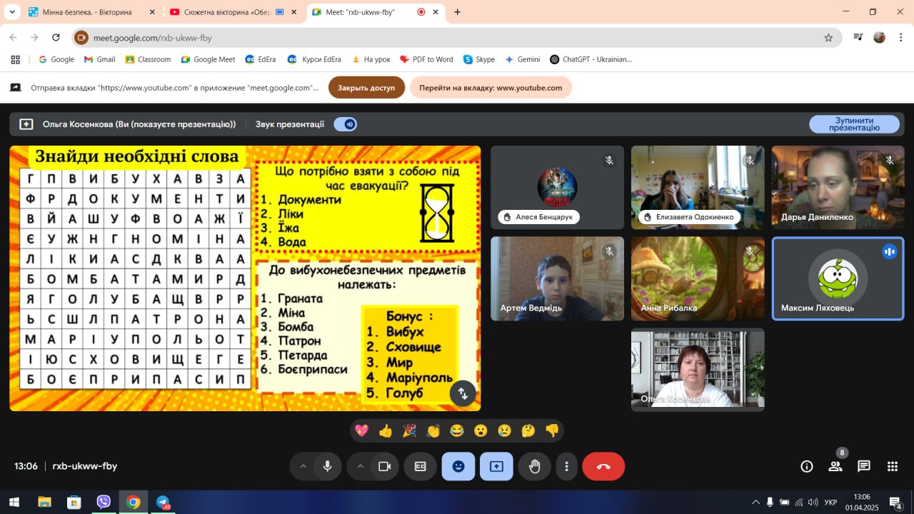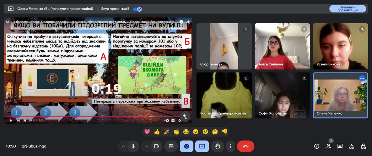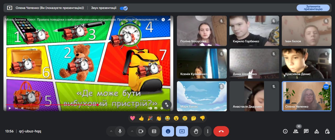 З цією метою для учнів середньої та старшої школи було проведено уроки з мінної безпеки 📚, квести 🕵️♂️, конкурс малюнків та плакатів “Намалюй, а не ризикуй!” 🎨. Під час заходів здобувачі освіти дізналися більше про розмінування 🛠️, про характеристики вибухонебезпечних пристроїв та алгоритм дій у разі зустрічі з ними 🚨.