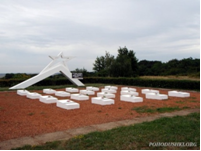 Стела з позначенням місця, де були заміновані стежки.