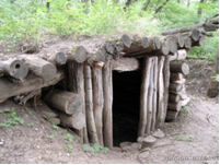 Це безпосередньо те місце, де жили партизани. Землянки, курені. Найпростіша землянка представляє собою виритий в землі котлован, над яким встановлено дерев’яний остов з опор і перекриттів, а поверху насипаний шар землі. Саме тут базувалися і прийняли останній бій партизани.