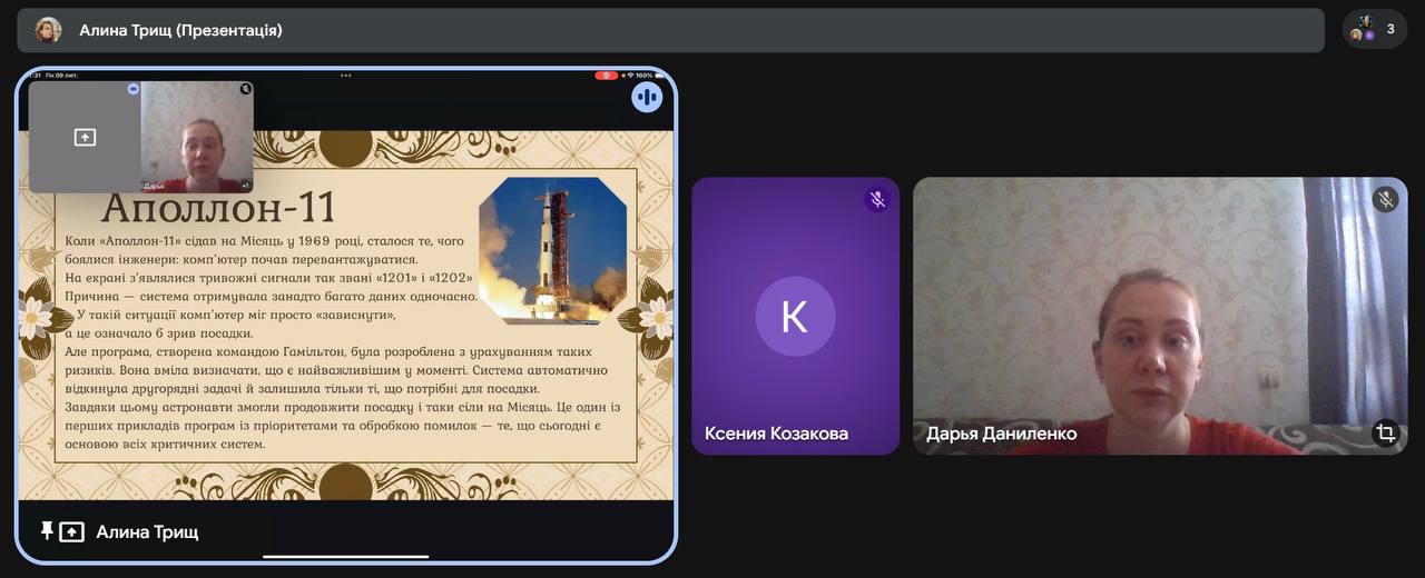 Під час зустрічі учні дізналися про Аду Лавлейс – першу програмістку в історії людства ⚙️, Маргарет Гамільтон 🚀 – керівницю розробки програмного забезпечення місії «Аполлон», та Катерину Ющенко 🇺🇦 – українську науковицю, авторку однієї з перших мов програмування високого рівня.