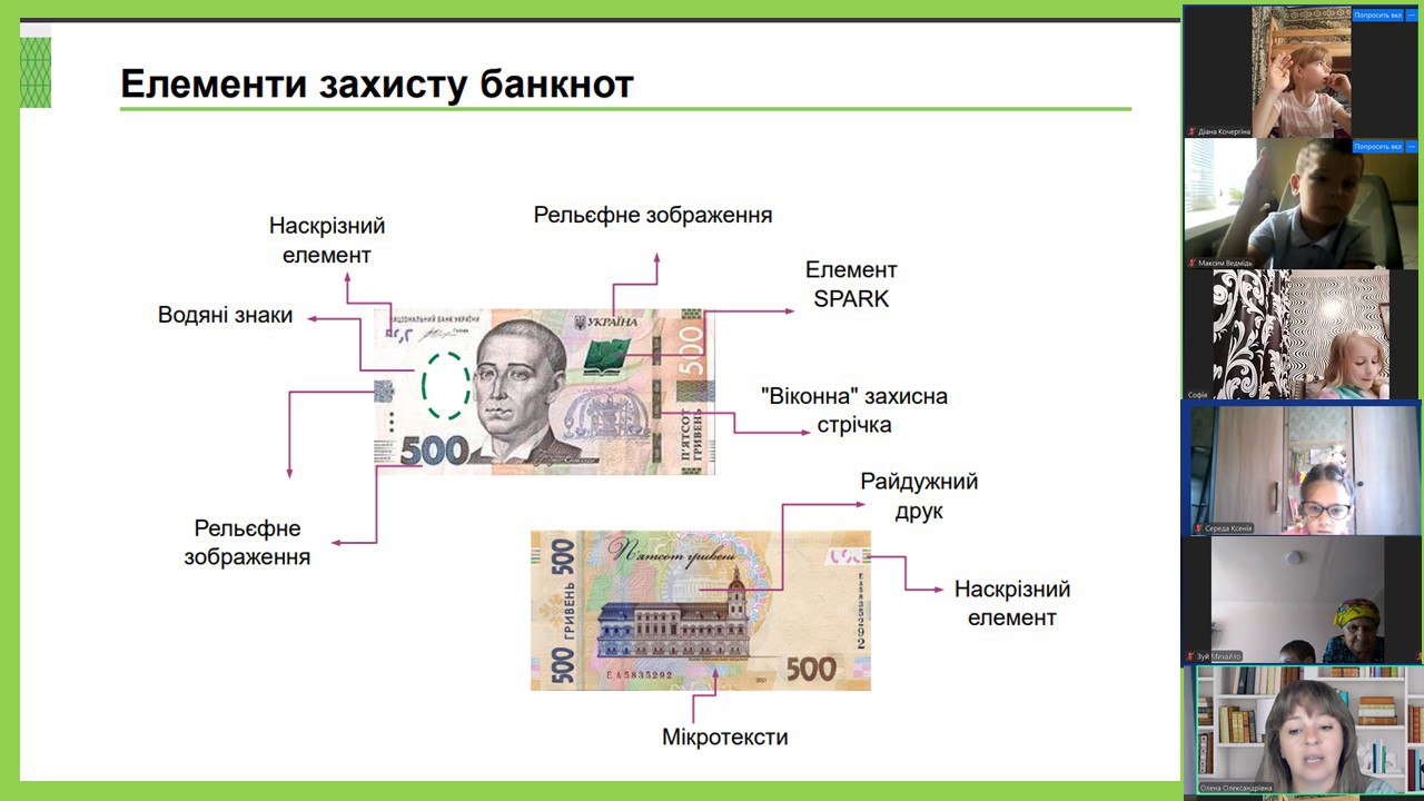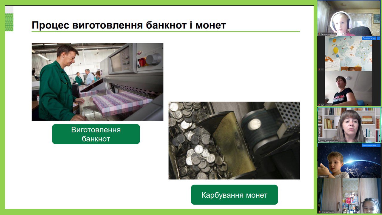 Вчителька Олена Гупалова цікаво познайомила дітей з різноманітними видами монет і купюр, розповіла про видатних людей та пам’ятки архітектури, зображені на українських гривнях. Діти дізналися, як правильно визначати номінал грошей та де шукати захисні елементи, щоб не потрапити у пастку до шахраїв. А відвідавши майстер-клас від Центру фінансових знань «ТАЛАН», кожен учень виготовив свою свинку-скарбничку для накопичення власного першого капіталу.